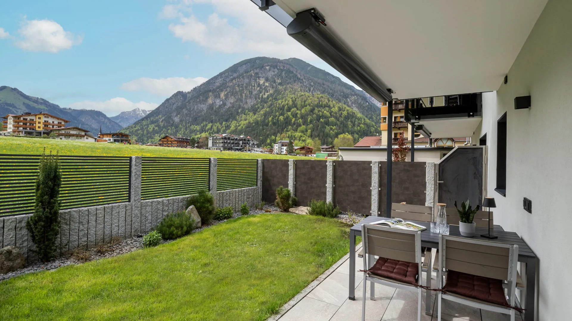 - Große möblierte Süd-West Terrasse mit eigenem, eingezäunten Garten,
