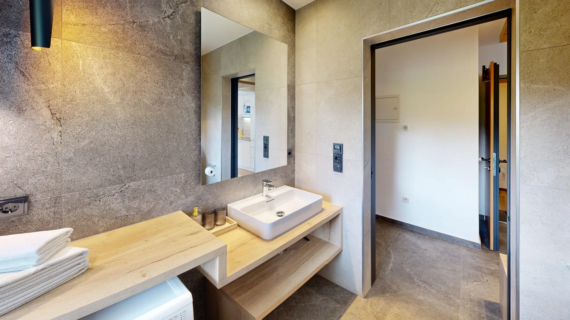 - 1 Bad mit Dusche und WC, Föhn, Seifenspender, Waschmaschine