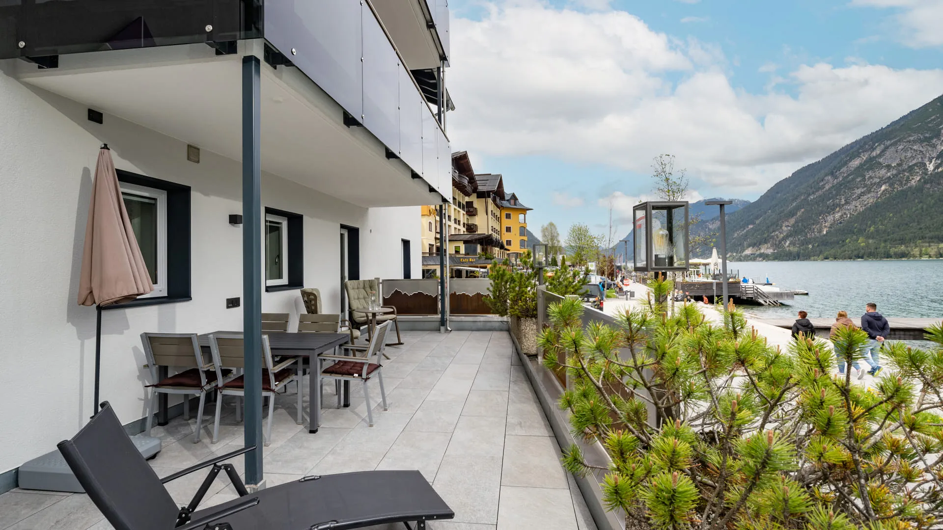 - Große möblierte Süd-West Terrasse mit eigenem, eingezäunten Garten,