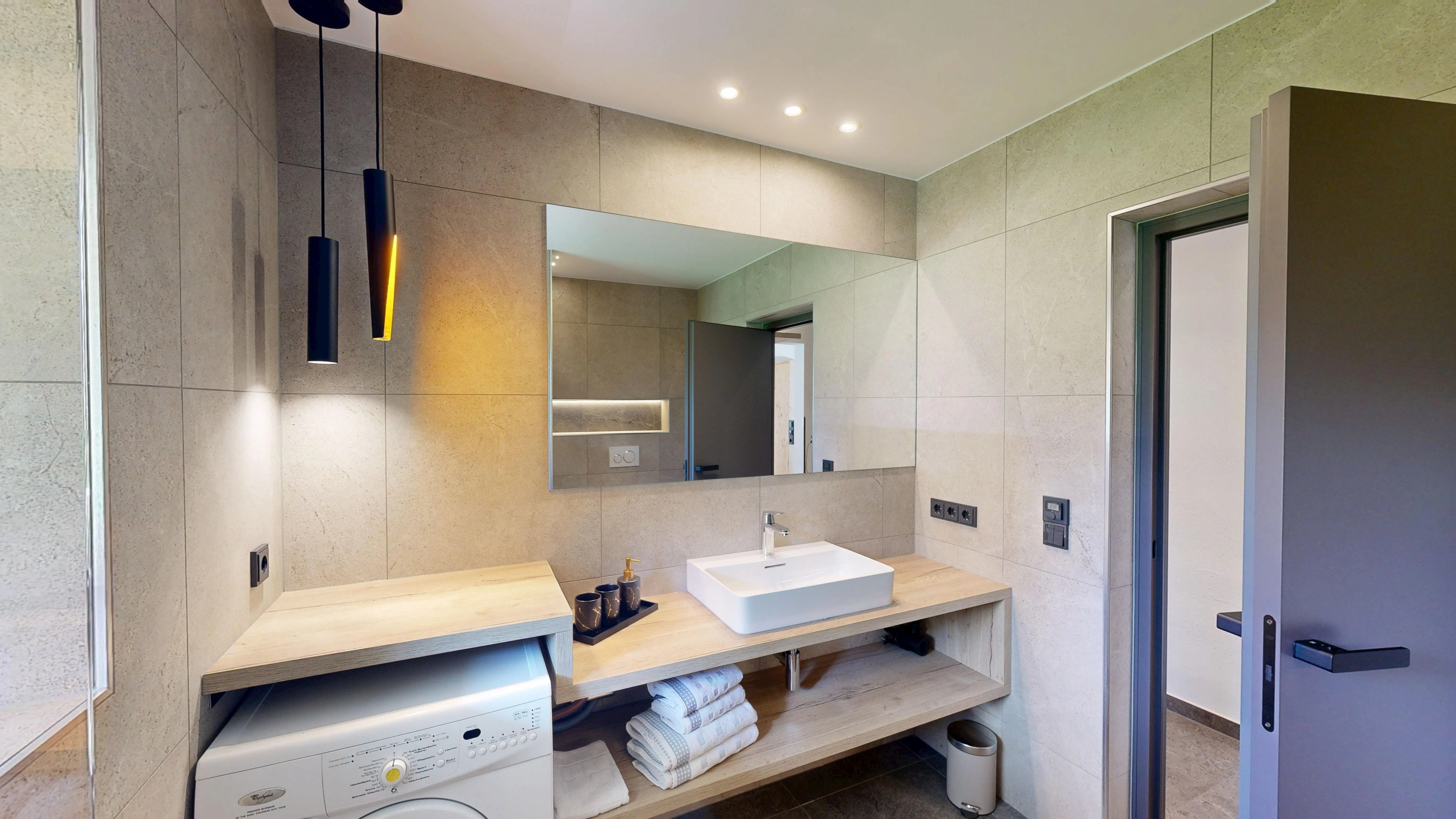 - 1 Bad mit Dusche und WC, Föhn, Seifenspender, Waschmaschine